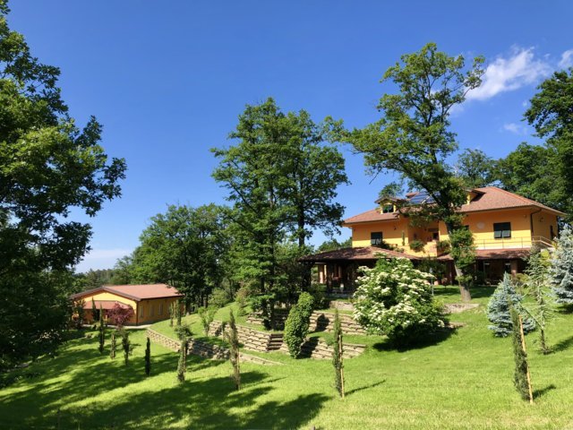 PARCO mq 30.000 piantumato e con impianto d’irrigazione. Querce, aceri, castagni, abeti, cedri del libano, tigli, cipressi, betulle, salice, ciliegio, tassi, liquidambar, ginko-biloba, sambuco, centinaia di piante di melo con apposito sistema di irrigazione a goccia, cespugli di rose, glicini, varietà di piante ornamentali sulle palificate di ingegneria naturalistica a lato abitazione e a valle.
